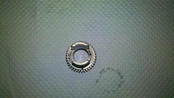 Dateikommentar: ist das in dem zahnrad die richtige makierung die mit dem Pfeit Fluchten muß? auf der Rückseite der Kolbenstange ist ein R