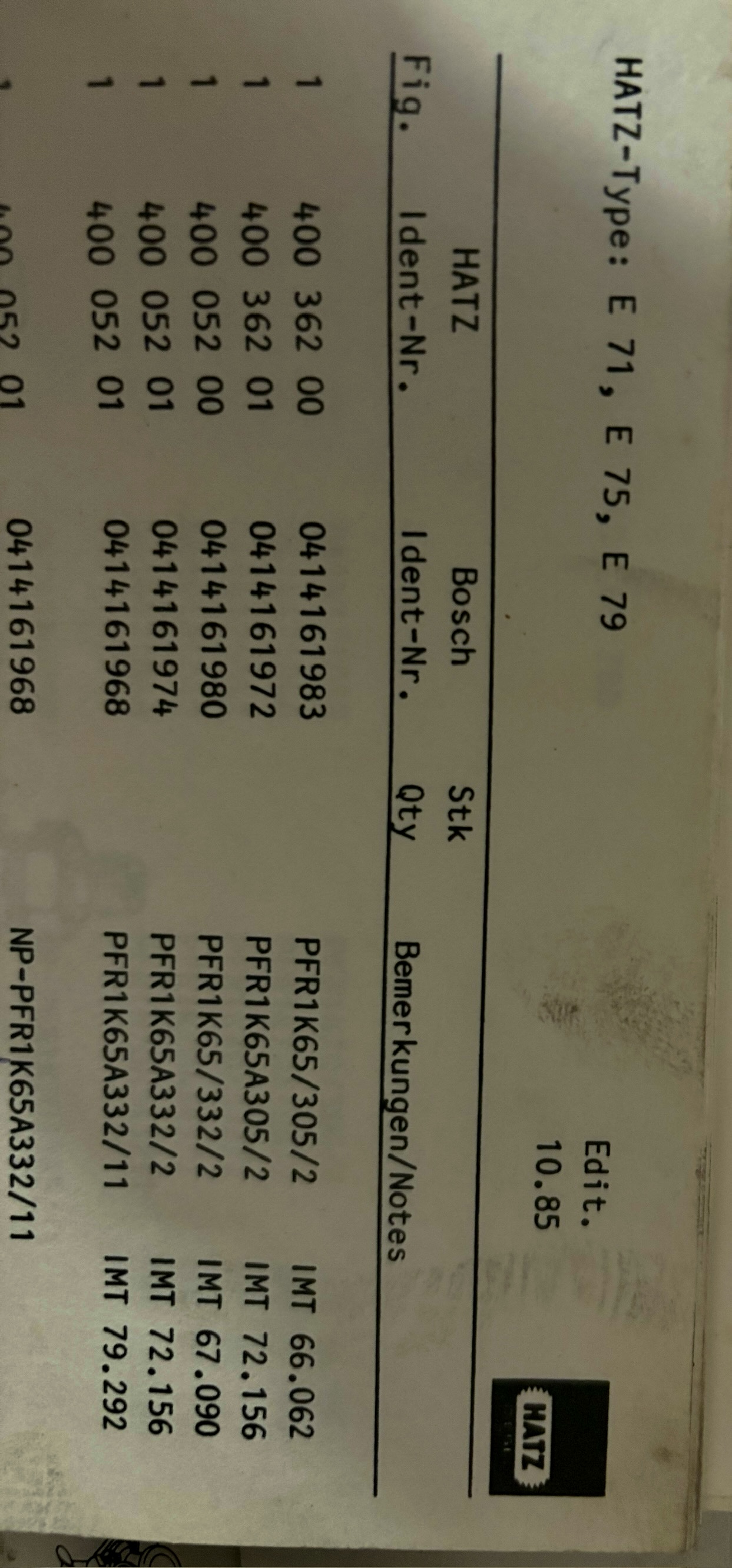 Betreff des Beitrags: | Hatz E75/ welches Einspritzventil passt zur Einspritzpumpe? |