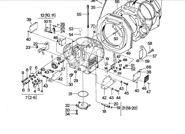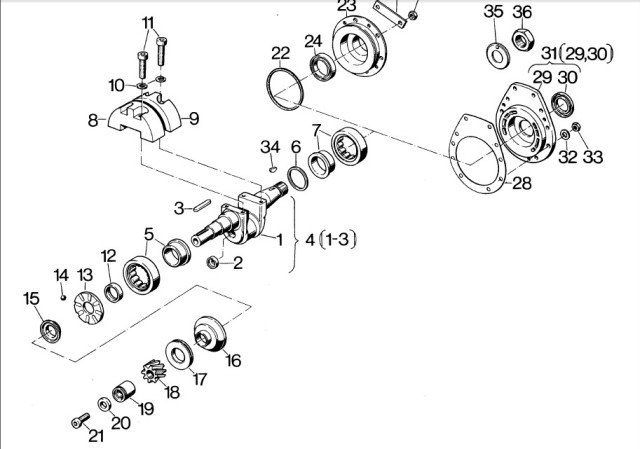 Nun müsste ich aber eigentlich die Achse (18) der Gabel (22) ausbauen um letztere wieder einbauen zu können. Hat jemand vielleicht schon mal das gleiche machen müssen und einen Lösungsvorschlag, wie ich die Achse aus dem Kurbelgehäuse herausbekomme? Erwärmen habe ich schon erfolglos versucht.