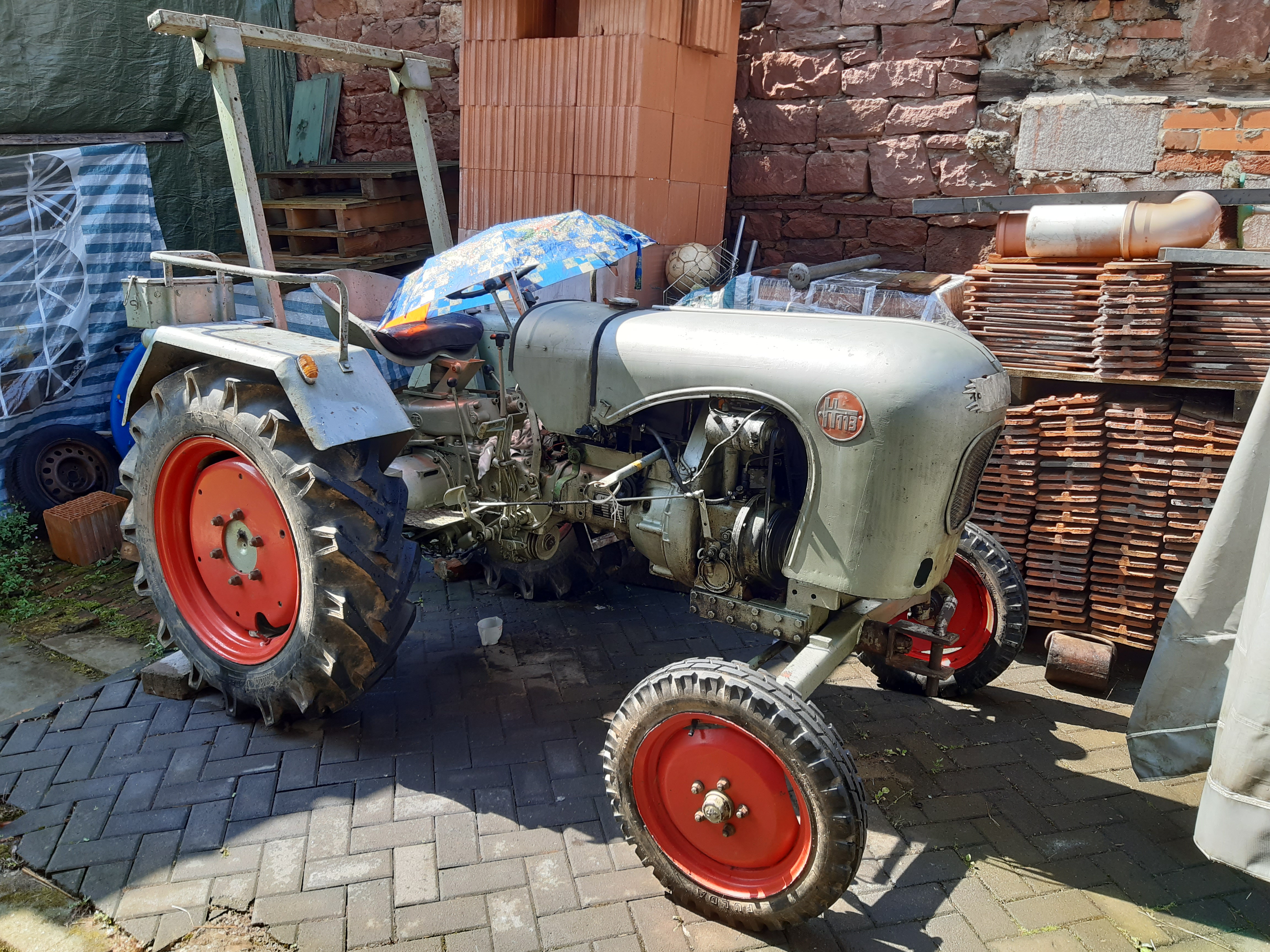 Hallo. Mein Name ist Marco und ich komme aus Unterfranken. Ich besitze seit kurzem einen Traktor H113. Das gute Stück ist 1965 zugelassen worden und brauch jetzt erstmal wieder ein bisschen Pflege und Zuneigung. Nach dem Reinigen und wechseln aller Öle habe ich 3 Stellen gefunden wo undicht sind. Und die Elektrik müsste auch gemacht werden. Ich freue mich schon auf nette Gespräche und einen guten Informationsaustausch. Vielen Dank nochmal an Thomas Brandl für die Aufnahme und die vielen Unterlagen. Mfg Marco